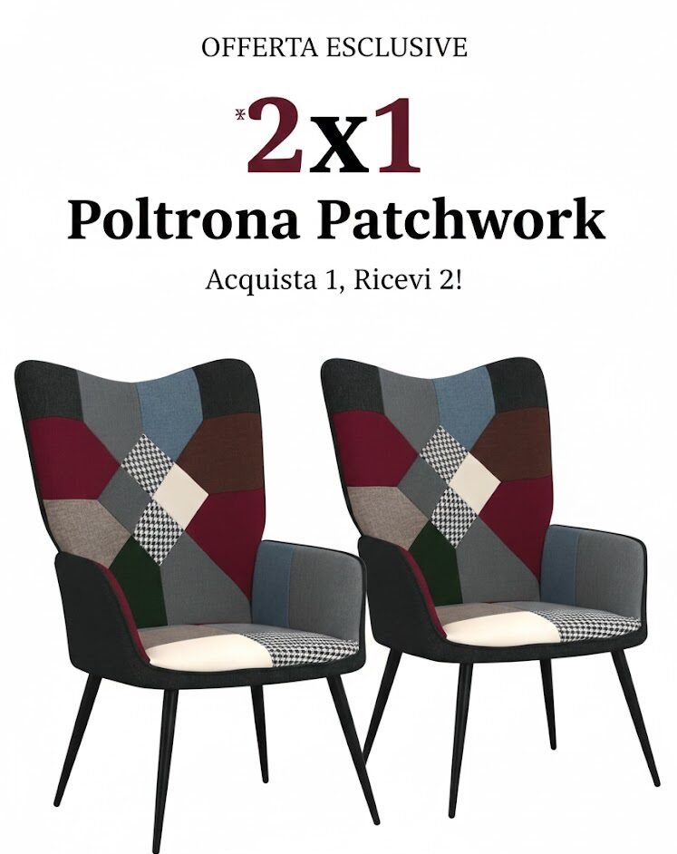 Poltrona stupenda! Il patchwork è proprio come in foto e dà un tocco di colore al salotto. Comodissima e molto solida, perfetta per rilassarmi la sera.