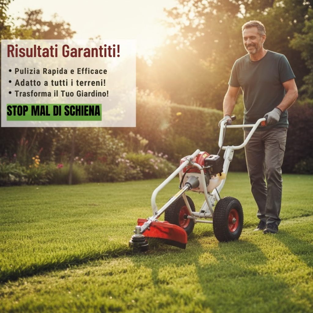 Taglia l’erba alta senza sforzo. Le ruote rendono il lavoro comodissimo, non devo più portarlo a spalla. Potente e stabile.