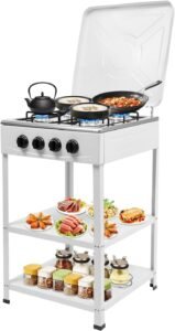 Perfetto per campeggi, terrazze o giornate all’aria aperta, questo fornello portatile ti offre 4 fuochi indipendenti in un formato compatto e resistente. Montaggio semplice, accensione manuale e tutto lo spazio che ti serve per cucinare come a casa, ovunque tu sia.